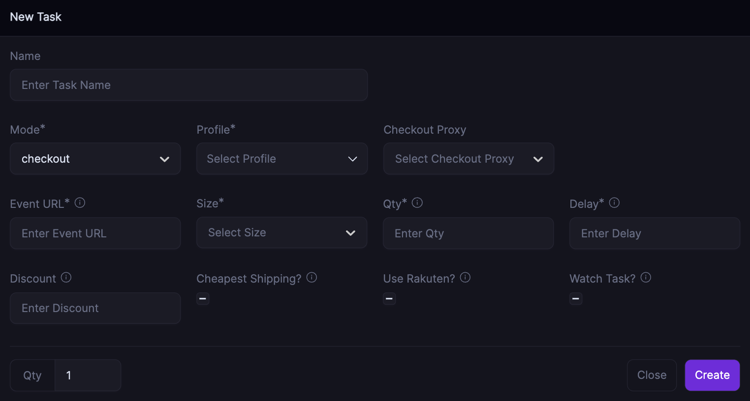 * If this box is unchecked, your task will monitor the sku, add to cart and checkout