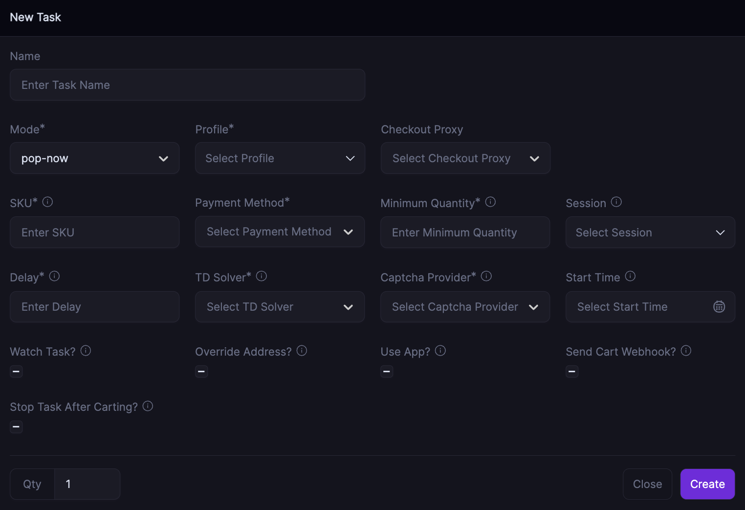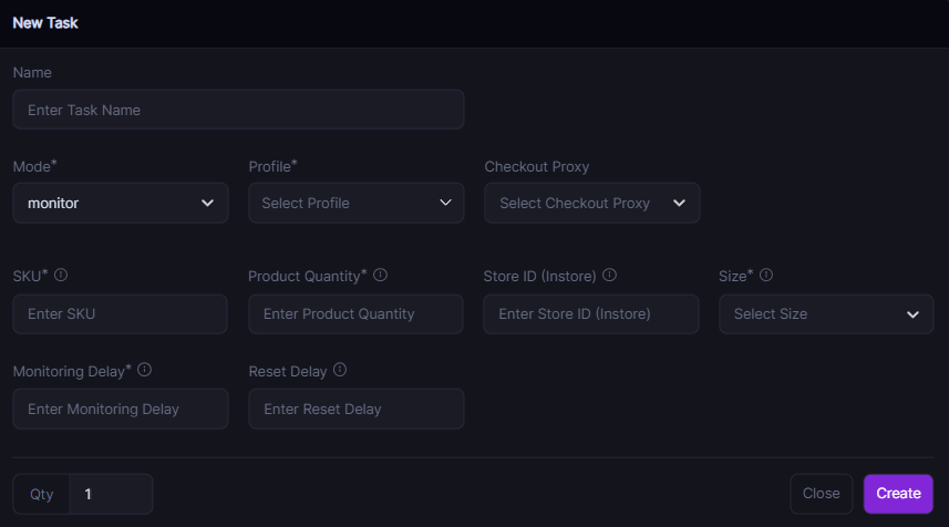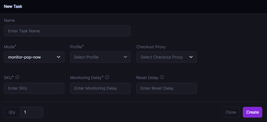 * Enter the how many units you'd like to purchase in one order (For Popmart Instore you need to run qty of `6` for Whole set so you just select Single and qty of `6`, for regular checkout tasks nothing changes.)