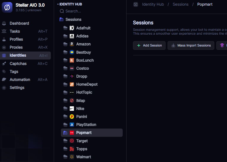 Popmart supports account-based and guest checkout. For Account mode tasks, pre-created accounts or Stellar’s **account-gen mode** are needed.