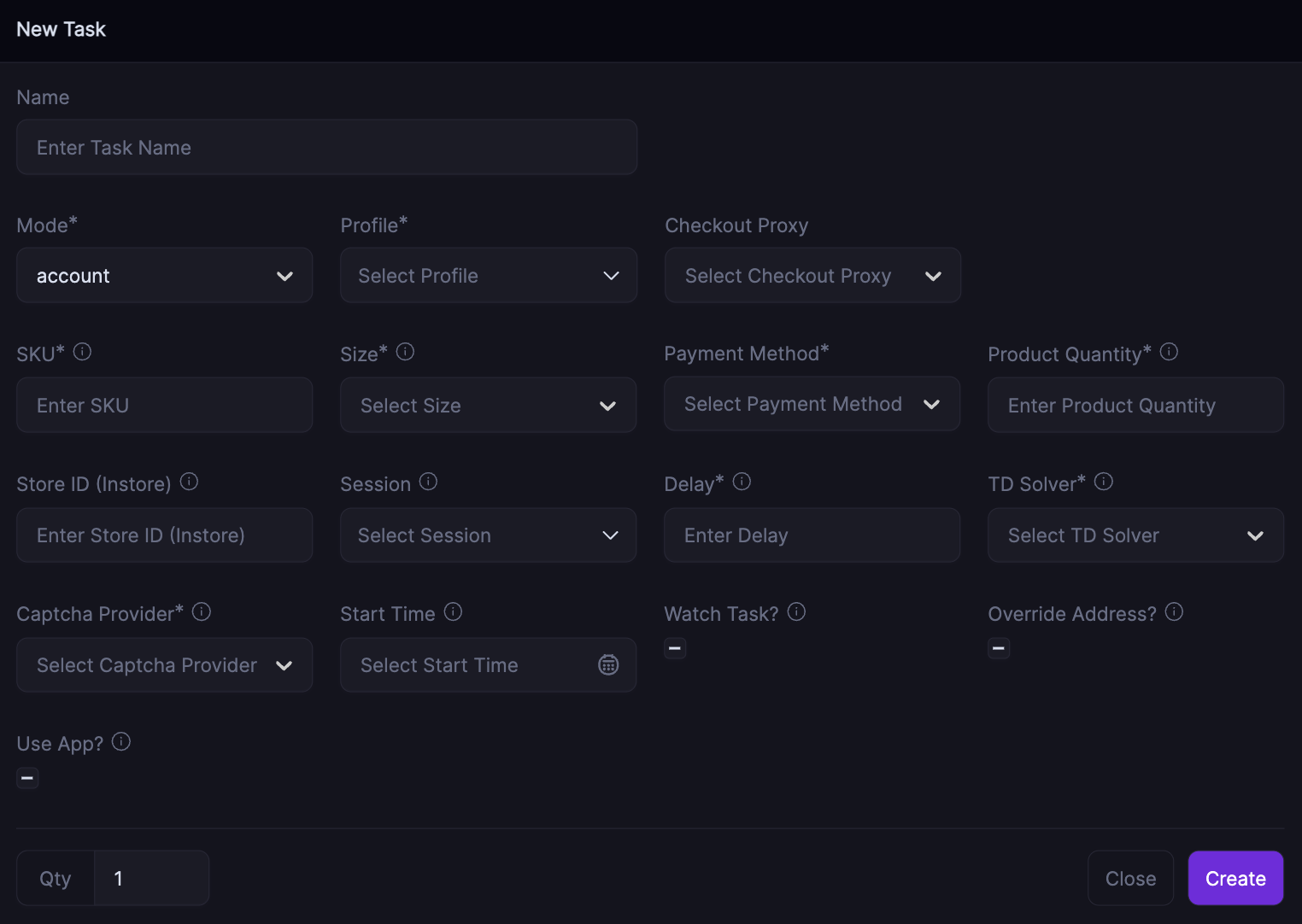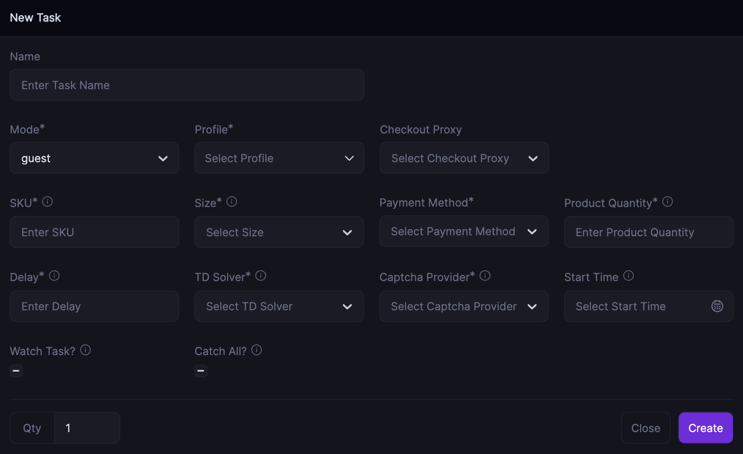If you leave the **Watch Task** checkbox **unchecked**, the checkout task will act independently. It will monitor the SKU itself, add the item to your cart, and checkout directly