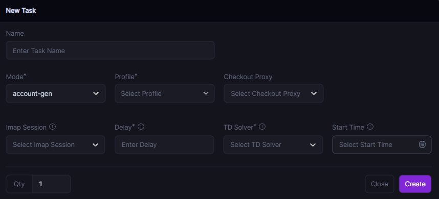 * You can leave this field empty and you'll need to manually enter in the account verification codes you'll receive via email. A window will open when its time for you to input the account verification codes, make sure you have at least one [captcha harvester](https://guides.stellaraio.com/stellar/navigating-stellaraio/what-is-the-captchas-tab/how-do-i-set-up-the-captcha-harvester) set up